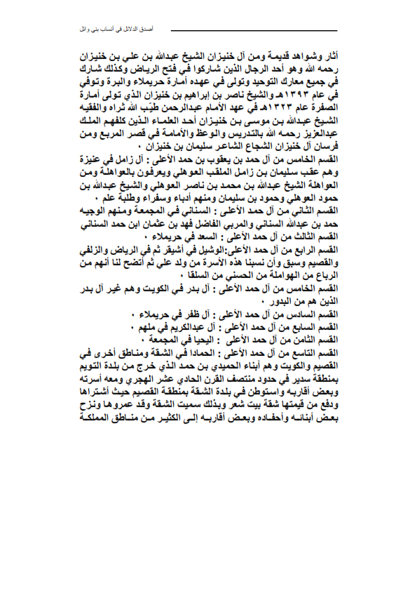 آل حمد الرباع من عنزة أسر الرباع بالقصيم