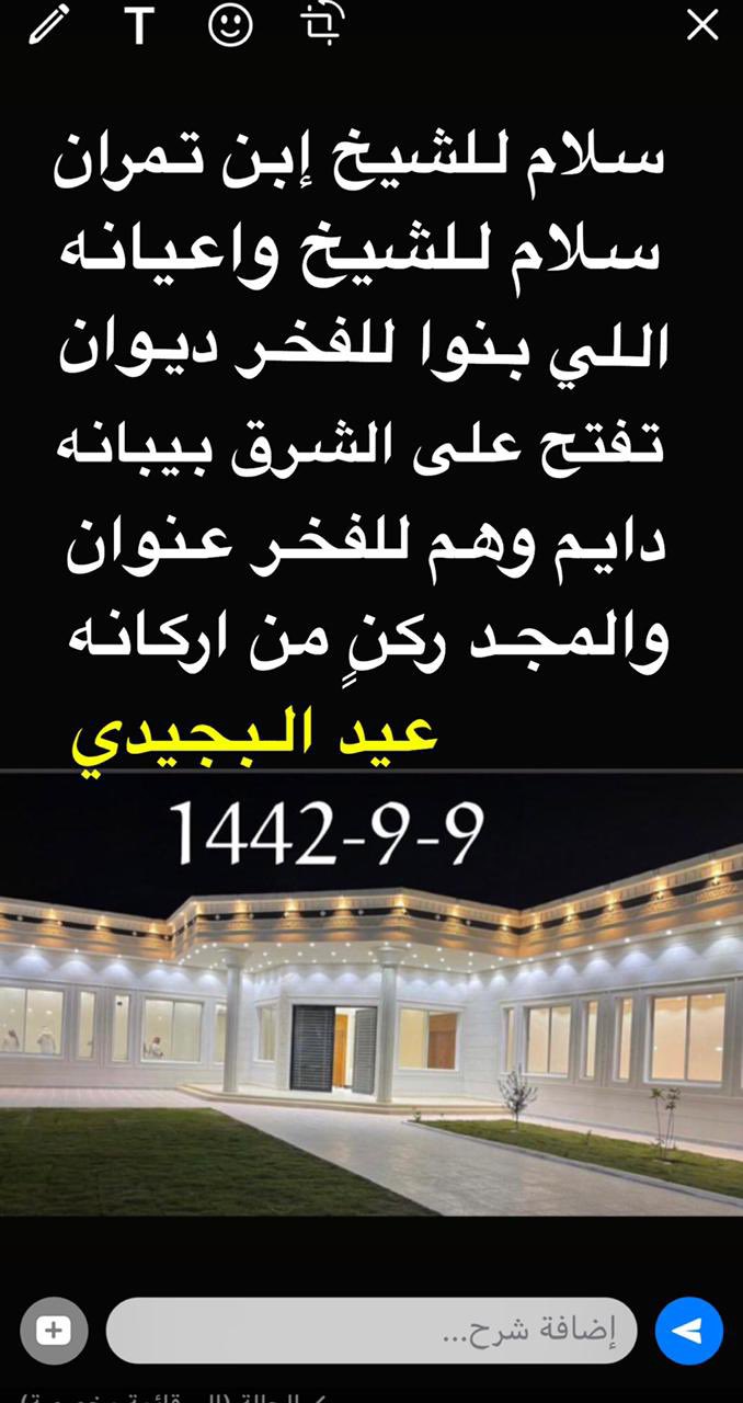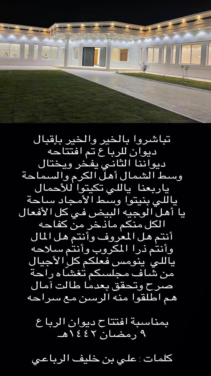 تم بحمد الله وتوفيقه افتتاح ديوان الرباع في مدينة عرعر وذلك في تاريخ 09/09/1442